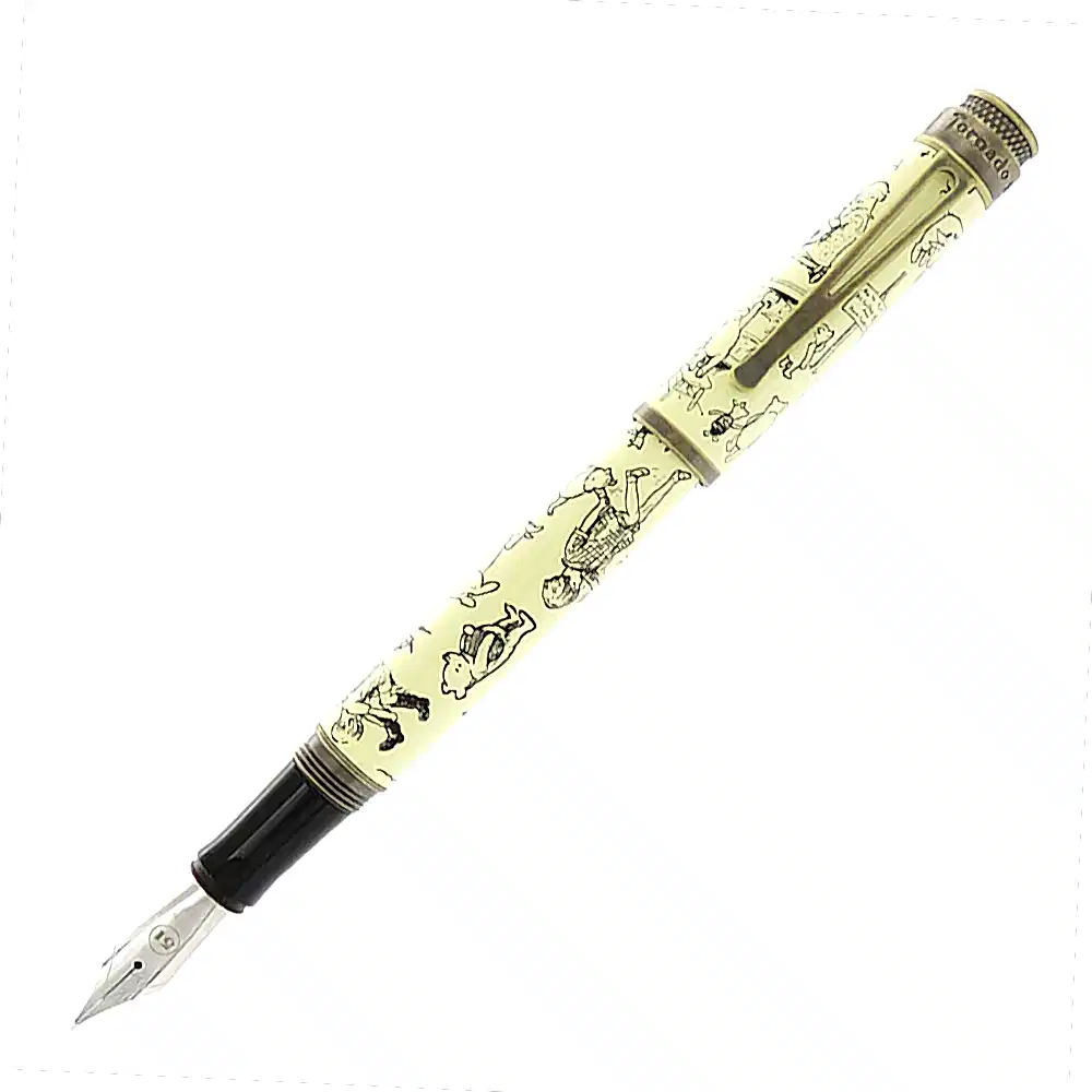 Edebi koleksiyona katılan yeni A.A. Milne Winnie-the-Pooh dolma kalem. "Dekorasyonlar", taş yıkanmış pirinç vurgular ve numaralı üst halkayla tamamlanan, aynı adı taşıyan ilk kitaptaki tüm sevgili karakterleri içeriyor. Her kalemin tepesinde, cebinizde veya kalem koruyucunuzda saklandığında size bakan "aptal yaşlı Ayı" yazısı bulunur. Koleksiyonun ambalajını tamamlamak için orijinal kitap kapağını taklit eden altın varak damgalı yeşil kağıt tüplere yükleniyorlar.